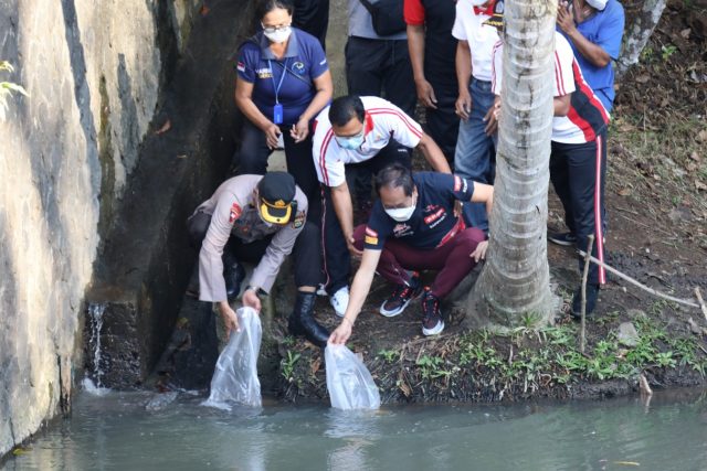 Sebagai upaya dalam melestarikan ekosistem perairan tawar sekaligus mendorong program Gerakan Memasyarakatkan Makan Ikan (Gemarikan) dalam rangka bulan bhakti gotong royong Pemerintah Desa Abiansemal, Wakil Bupati Badung I Ketut Suiasa melaksanakan penebaran 10.000 benih ikan nila di Dam Subak Latu Br. Juwet Abiansemal, Jumat (21/5).