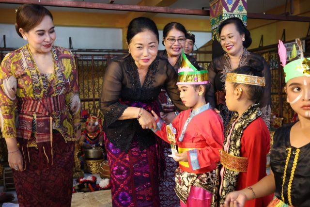 Bunda PAUD Kota Denpasar Ny. Sagung Antari Jaya Negara menghadiri puncak HUT ke-50 TK Dharma Putra, Banjar Kedaton, Desa Sumerta Kelod yang digelar di Bale Banjar Kedaton pada Sabtu (14/6). Peringatan ini merupakan momentum 50 tahun berdirinya TK Dharma Putra serta berkontribusi dalam memajukan pendidikan di Kota Denpasar pada umumnya.