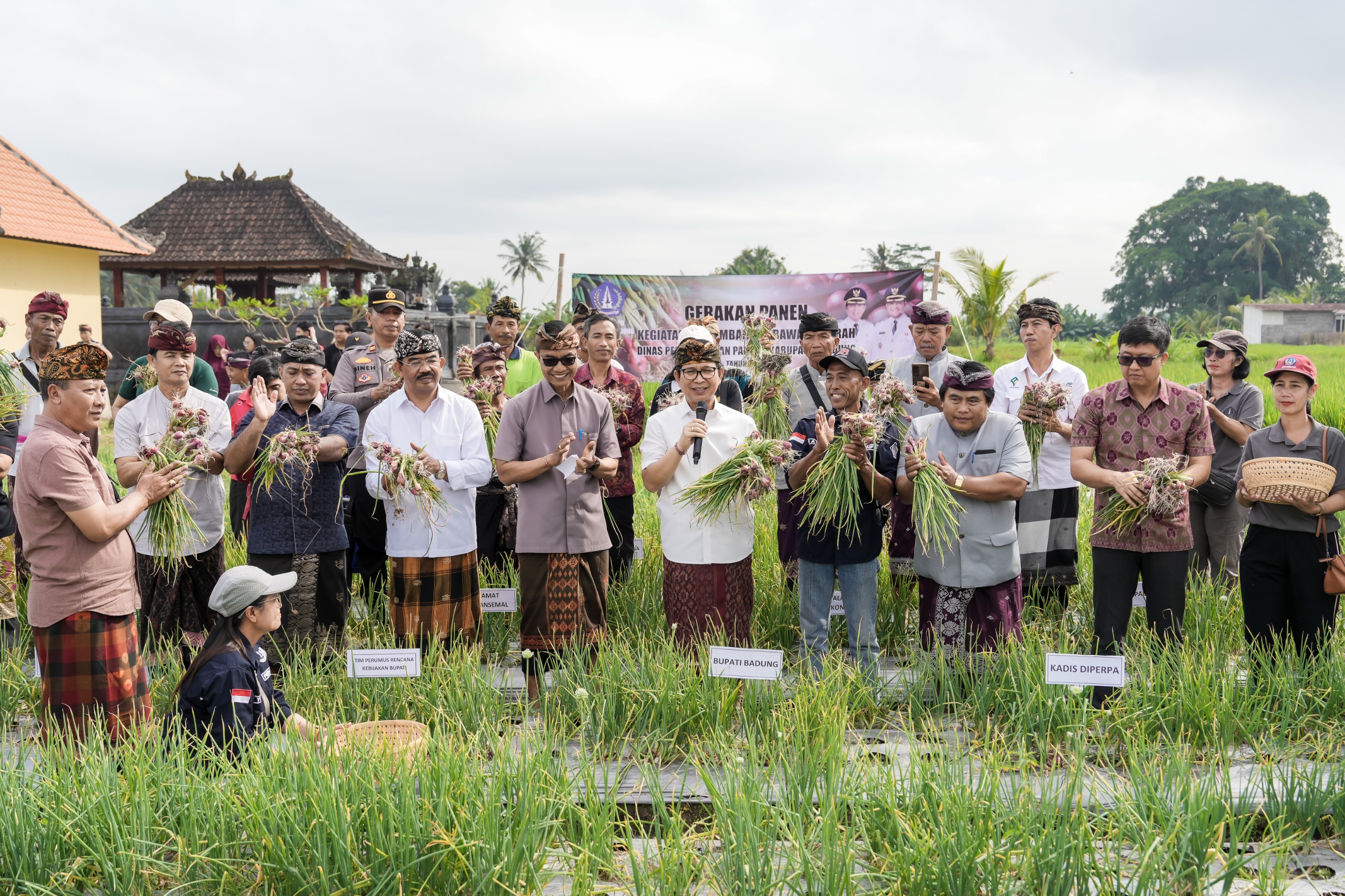 Bupati Adi Arnawa Hadiri Panen Perdana Pengembangan Bawang Merah di Subak Padedekan, Angantaka
