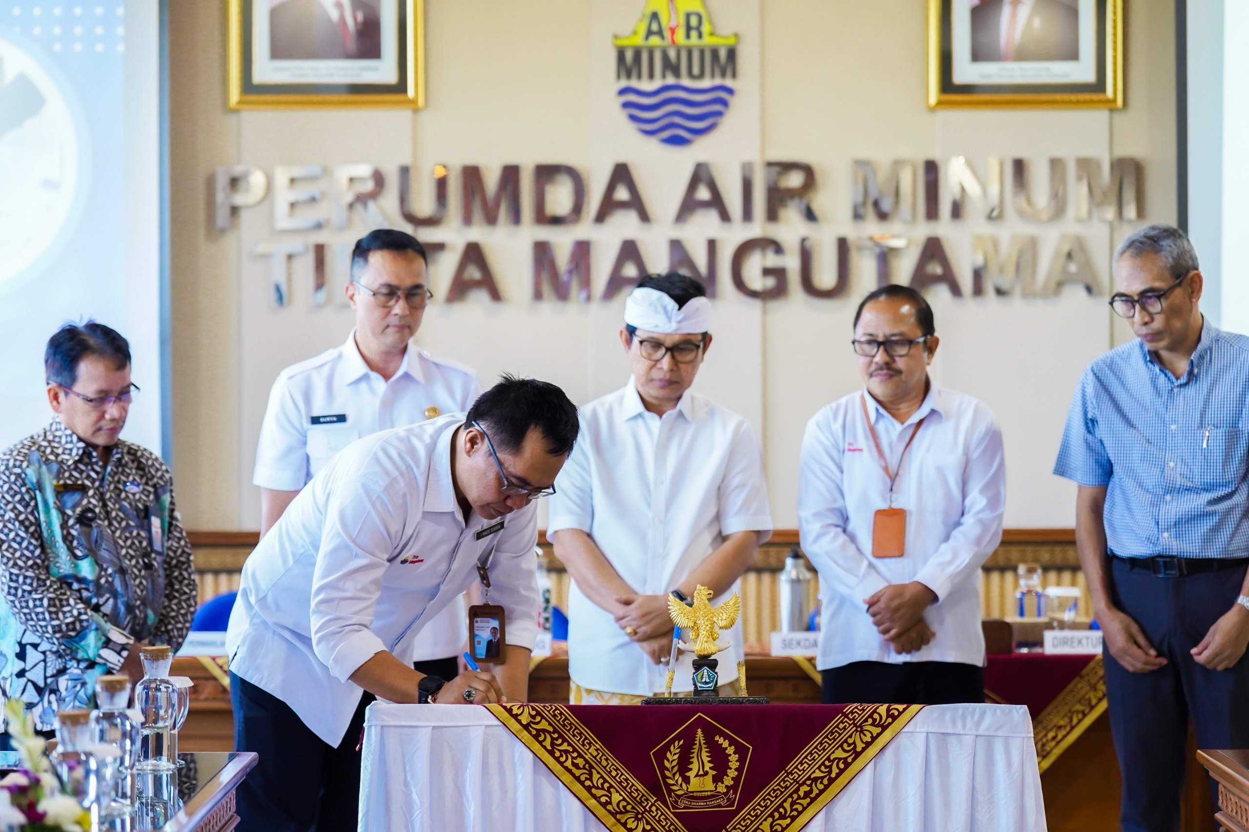 Pemerintah Kabupaten Badung berkomitmen untuk mempercepat pemenuhan kebutuhan dasar masyarakat, khususnya ketersediaan air bersih di wilayah Badung Selatan. Langkah awal tersebut diwujudkan melalui penandatanganan perjanjian kerja sama (MoU) antara Perumda Air Minum (perumdam) Tirta Mangutama dengan PT Pipa Ticini Bali, dalam proyek strategis optimalisasi jaringan distribusi air minum dengan skema Kerjasama Pemerintah dengan Badan Usaha (KPBU) model Build-Transfer-Operate (BTO) yang dilaksanakan di Ruang Rapat Perumda Air Minum Tirta Mangutama, Jalan Raya Kapal, Mengwi, Rabu (3/9).