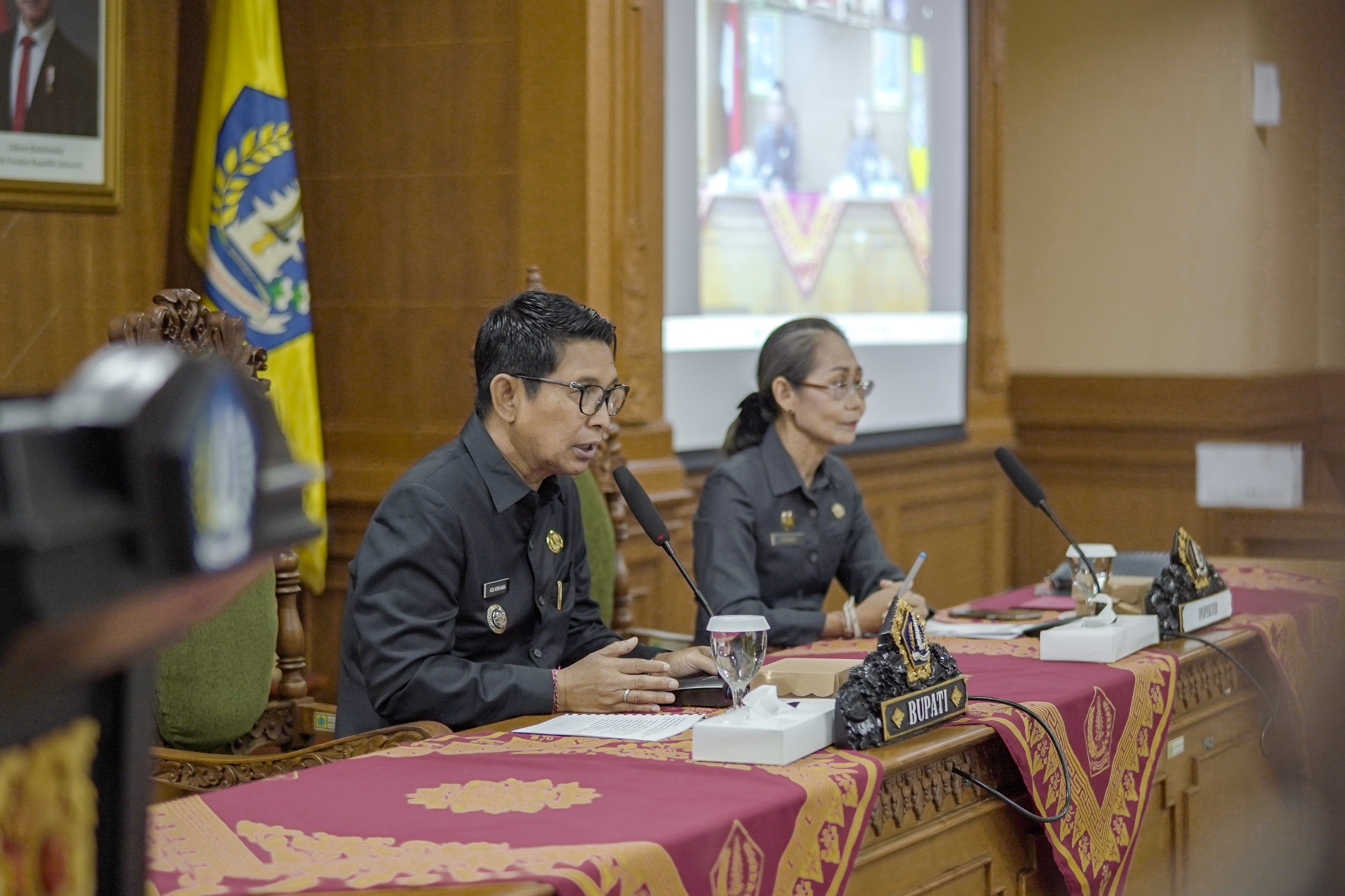 Bupati Badung I Wayan Adi Arnawa mengikuti secara daring Rapat Koordinasi Program Pemberantasan Tindak Pidana Korupsi Tahun 2025, terkait dengan Penertiban Aset dan Optimalisasi Pajak Daerah Pemerintah Kabupaten Badung yang dilaksanakan oleh Komisi Pemberantasan Korupsi Republik Indonesia (KPK RI), Rabu (30/4) bertempat di Ruang Rapat Kriya Gosana, Puspem Badung.
