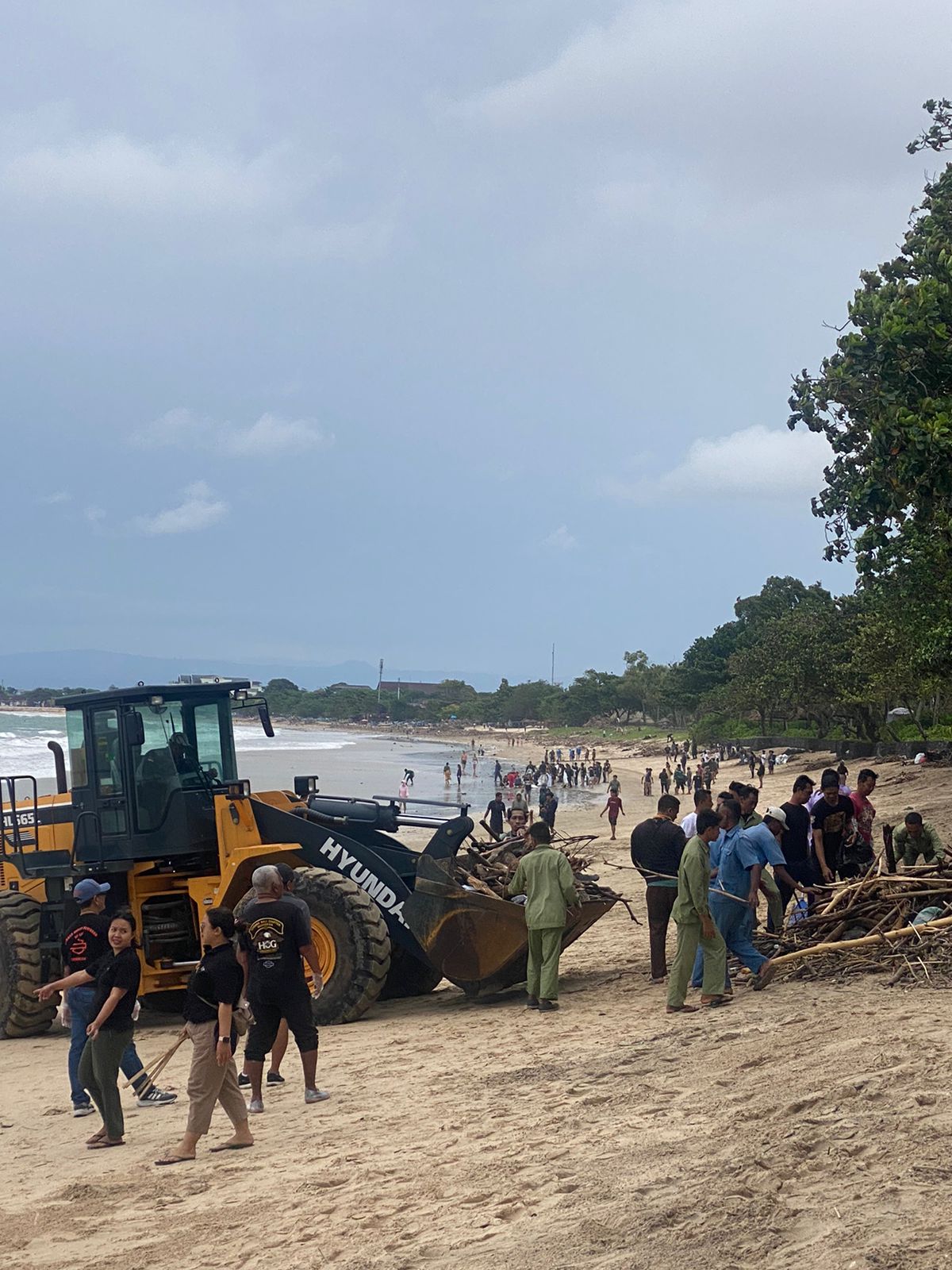 Kegiatan ini juga mendapat dukungan penuh dari Dinas Lingkungan Hidup dan Kebersihan (DLHK) Badung yang menurunkan alat berat jenis loader untuk mempercepat pengangkutan sampah kiriman.