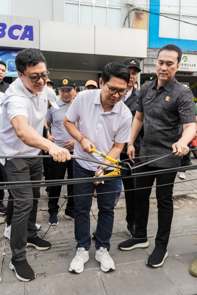 Bupati Badung I Wayan Adi Arnawa bersama Kepala Kejaksaan Negeri (Kejari) Badung Sutrisno Margi Utomo beserta jajaran kembali melaksanakan penertiban jaringan utilitas dengan pemotongan kabel provider bersama Dinas PUPR Badung di kawasan Jalan Raya Berawa, Desa Tibubeneng, Kuta Utara, Jumat (20/6). Selain kawasan Tibubeneng, Bupati juga melaksanakan kegiatan ini di kawasan Desa Pererenan dan Desa Munggu, Mengwi.