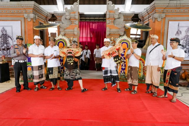 BAPANG BARONG – Bupati Badung Nyoman Giri Prasta membuka secara resmi Lomba Bapang Barong dan Mekendang Tunggal Jambe Festival ST Eka Darma Banjar Jambe Kerobokan Kaja, Desa Adat Kerobokan, Kecamatan Kuta Utara, Minggu (16/10).