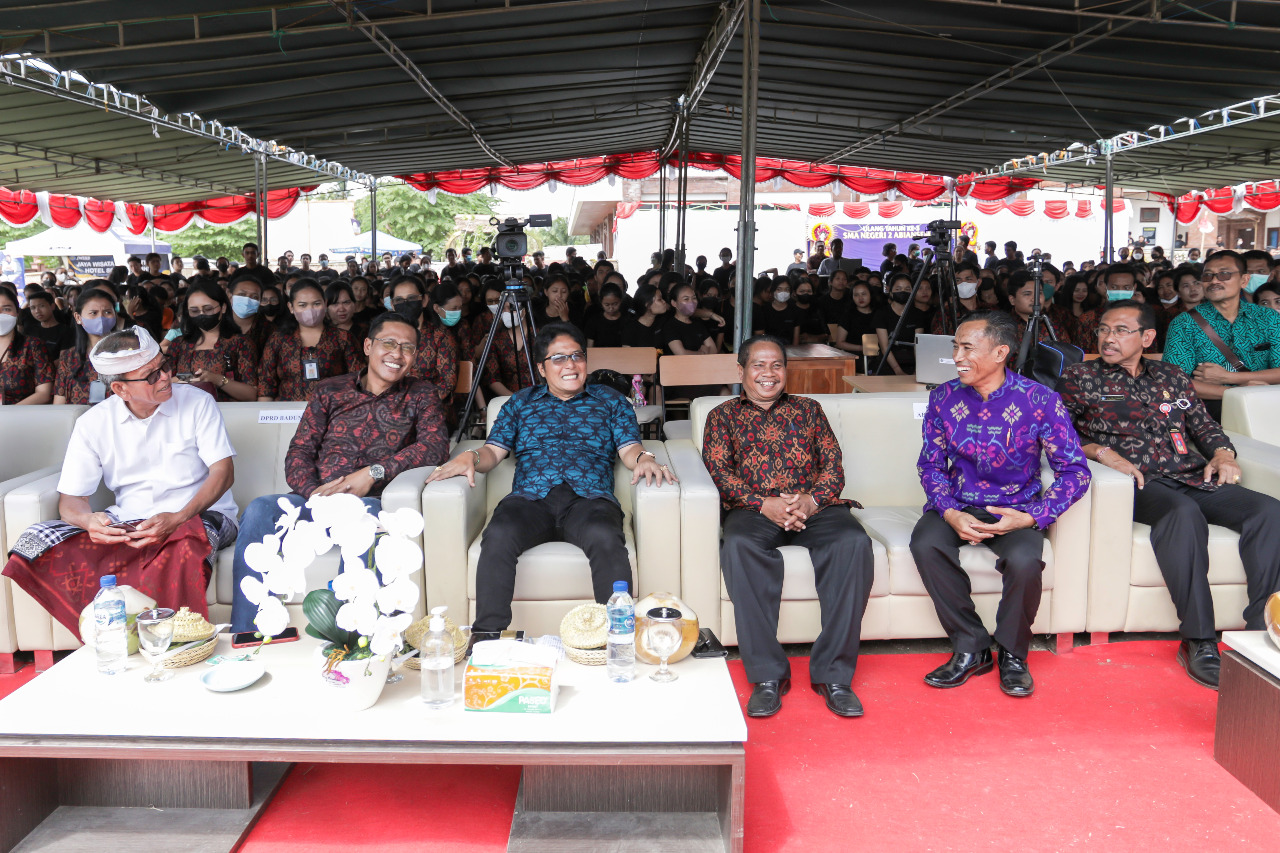 SMAN 2 ABIANSEMAL – Bupati Nyoman Giri Prasta menghadiri perayaan Hari Ulang Tahun Ke-3 SMA Negeri 2 Abiansemal, Sabtu (3/9)