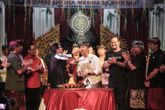 Puncak acara HUT ST Mahudara Mendara Putra ini ditandai dengan pemotongan tumpeng yang langsung dilakukan oleh Bupati Giri Prasta dan diserahkan kepada Ketua ST Gede Yoga Subawa.
