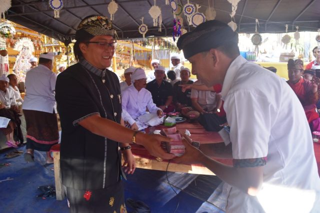 dalam kesempatan tersebut Bupati Badung, I Nyoman Giri Prasta Menyerahkan Punia sebesar Rp. 30 Juta yang diterima langsung oleh Ketua Panitia Karya Dewa Nyadnya Pesemetonan Dadia Dalem Dasar I Nengah Sudiadnyana.