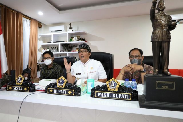 Demikian paparan virtual Bupati Badung Nyoman Giri Prasta di hadapan Widyaiswara Ahli Madya Badan Pengembangan Sumber Daya Manusia (BPSDM) Kementerian Dalam Negeri Urkanus Sihombing selaku Coach Pembimbing Pelaksanaan Penyusunan Rencana Aksi Bupati tahun 2021 dari Rumah Jabatan Bupati Badung, Selasa (15/6). Turut mendampingi Bupati, Wakil Bupati I Ketut Suiasa, Sekda Adi Arnawa, Kepala BKPSDM Gede Wijaya, Inspektur Luh Suryaniti dan pejabat terkait di lingkungan Pemkab Badung.