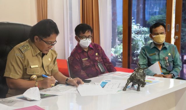 Bupati Badung I Nyoman Giri Prasta ikuti rapat koordinasi dan pengarahan Presiden RI kepada seluruh kepala daerah gubernur, bupati dan walikota seluruh Indonesia terkait penanganan covid-19 melalui virtual zoom, bertempat di Rumah Jabatan Bupati Puspem Badung, Senin (19/7). Turut hadir secara virtual Wakil Presiden Republik Indonesia, para menteri Kabinet Indonesia Maju, Jaksa Agung, Panglima TNI, Kapolri serta gubernur dan bupati/walikota seluruh Indonesia.