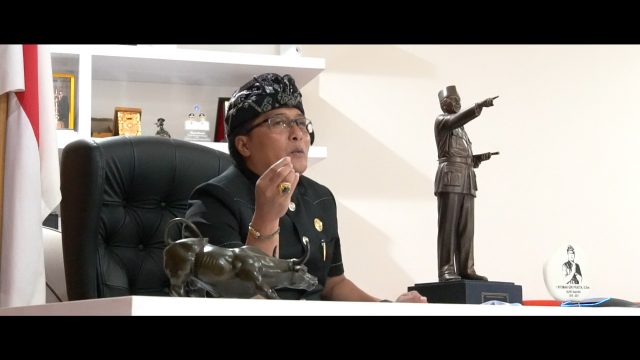 Bupati Badung I Nyoman Giri Prasta menjadi salah satu pembicara pada Webinar Leader Talk iNews yang bertemakan “Pariwisata Bali Menuju New Normal”, melalui aplikasi zoom dari Rumah Jabatan Bupati, Puspem Badung, Kamis (25/6). Selain Bupati Giri Prasta, webinar tersebut juga menghadirkan 3 (tiga) pembicara lainnya yaitu Wakil Gubernur Bali Tjok. Oka Artha Ardana Sukawati yang akrab disapa Cok. Ace, Bupati Klungkung I Nyoman Suwirta dan pengamat/Rektor Institut Pariwisata dan Bisnis Internasional Denpasar I Made Sudjana.