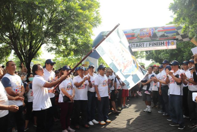 JALAN SANTAI – Bupati Badung I Nyoman Giri Prasta melepas jalan santai serangkaian hari jadi BPR Parasari Lukluk yang ke-50 dan BPR Parasari Sibang yang ke-29 bertempat di kawasan Puspem Badung, Minggu (29/12).