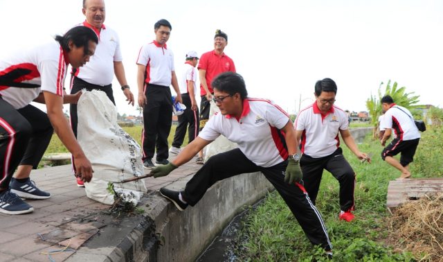 SERENTAK – Bupati Giri Prasta pimpin langsung Gerakan Serentak Badung Bersih 2019 di Desa Adat Dalung tepatnya di kawasan Wantilan Widya Mandala Utama, Pura Dalem Gede, Desa Adat Dalung, Jumat (16/8).