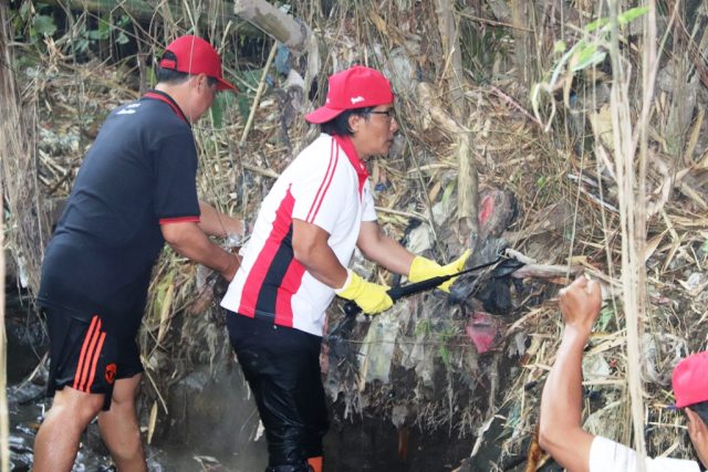 AKSI BERSIH – Bupati Badung I Nyoman Giri Prasta turun langsung melakukan bersih-bersih di Tukad Yeh Poh, Kelurahan Abianbase, Kecamatan Mengwi, Jumat (6/9) kemarin.