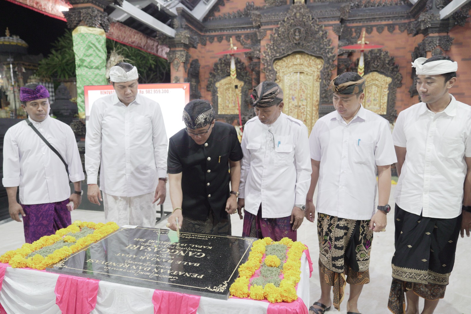 Bupati Badung I Nyoman Giri Prasta menghadiri peresmian Balai Banjar Ganggasari, Desa Adat Kapal, sekaligus menandatangani prasasti balai banjar setempat, Senin (19/2). Turut hadir dalam kesempatan ini anggota DPRD Badung I Made Suwardana, Camat Mengwi Nyoman Suhartana, serta unsur Tripika Kecamatan Mengwi, Lurah Lukluk I Nyoman Adi Setiawan, Bendesa Adat Kapal Ketut Sudarsana, serta tokoh dan masyarakat setempat.