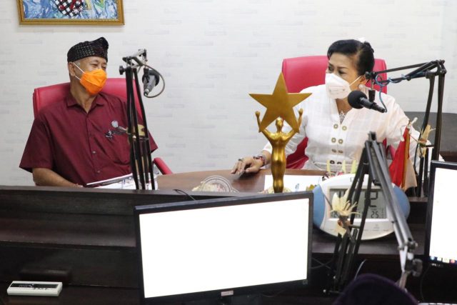 PESAN IBU – Ny. Putri Koster kampanyekan Ingat Pesan Ibu 3M di sebuah radio di Denpasar, Kamis (3/12/2020).