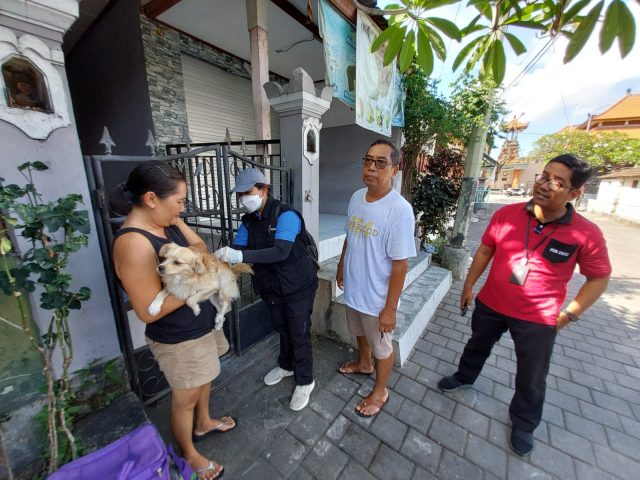 RABIES – Vaksinasi rabies terhadap hewan peliharaan di Kelurahan Dangin Puri, pada Rabu dan Kamis (27/4/2023).