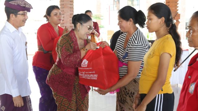 Sama seperti sebelumnya, pada kegiatan di Gianyar ini, BKOW Bali melaksanakan aksi sosial dengan membagikan bantuan paket sembako kepada 10 perempuan kepala keluarga, 10 ibu hamil dengan KEK (kekurangan energi kronis), 10 lansia, 10 balita kurang gizi dan 10 penyandang disabilitas. (sar)