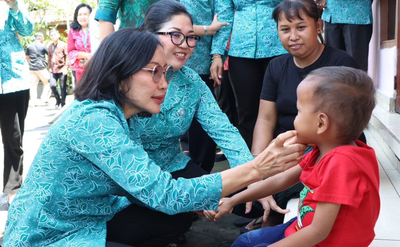 Setelah menyerahkan bantuan kepada masyarakat, Ny. drg. Ida Mahendra Jaya dan rombongan juga mendatangi langsung 4 balita terindikasi stunting, yakni GA Bima Kusuma Putra (4), Rania Renita Putri (2), Made Satria Putra (3), dan I Putu Gede Bajra Suastika (4).