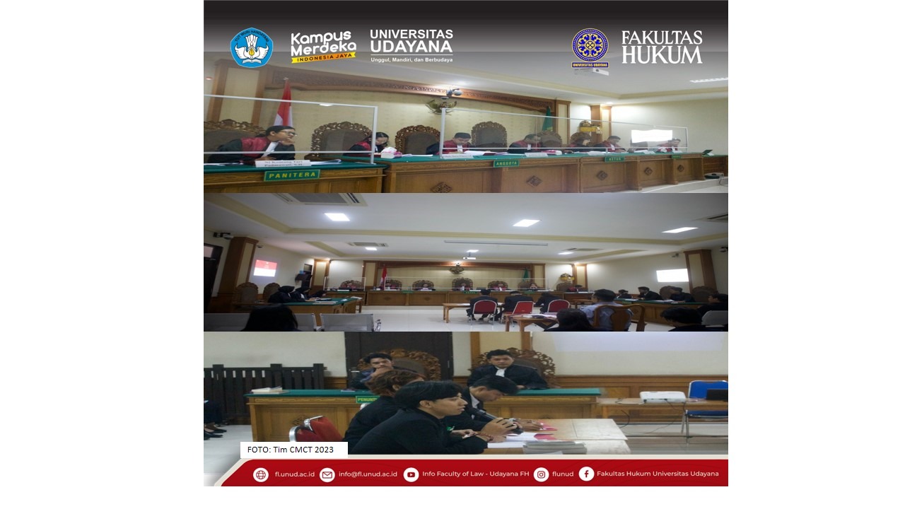 Constitutional Moot Court Training (CMCT) 2023 resmi ditutup pada Minggu (25/6/2023). CMCT merupakan salah satu wadah pelatihan peradilan semu di FH Unud yang berfokus pada peradilan konstitusi. CMCT digagas oleh Udayana Moot Court Community (UMCC). Kegiatan CMCT 2023 terdiri atas 4 rangkaian acara yang diikuti oleh 20 orang mahasiswa aktif FH Unud, yang kemudian terbagi menjadi 4 delegasi. Kegiatan ini dibuka pada pertengahan bulan Mei lalu dengan Seminar yang diisi oleh 3 pembicara yang merupakan dosen FH Unud.