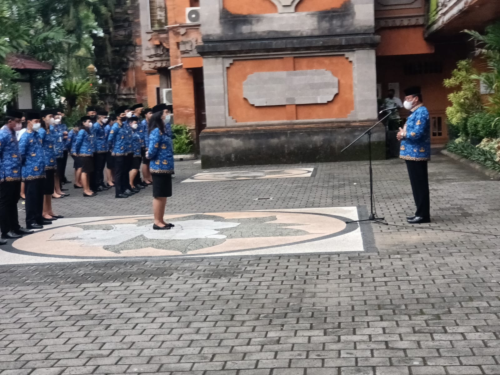 APEL DISIPLIN – Sekda IB Alit Wiradana saat memimpin apel disiplin pegawai di halaman Kantor Walikota, Senin (17/10).