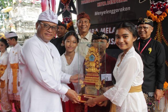 Penyerahan hadiah pemenang dilakukan langsung Sekretaris Daerah Kota Denpasar Ida Bagus Alit Wiradana didampingi Ketua PHDI Kota Denpasar I Made Arka pada Minggu (18/2) di kawasan Pura Jagatnatha.