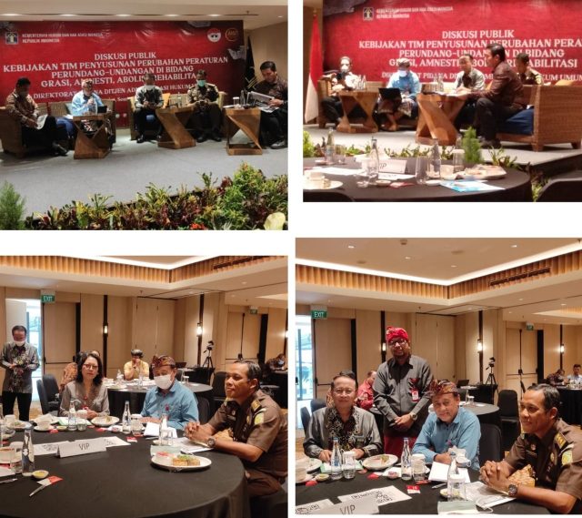 Dekan FH Unud diundang menjadi narasumber pada Diskusi Publik Kebijakan Tim Penyusunan Perubahan Peraturan Perundang-undangan di Bidang Grasi, Amnesti, Abolisi, Rehabilitasi (GAAR) yang diadakan oleh Direktorat Pidana Ditjen Administrasi Hukum Umum, Kementerian Hukum dan HAM Republik Indonesia, di Hotel Courtyard by Marriot Seminyak, Bali, Kamis, 7 Juli 2022.