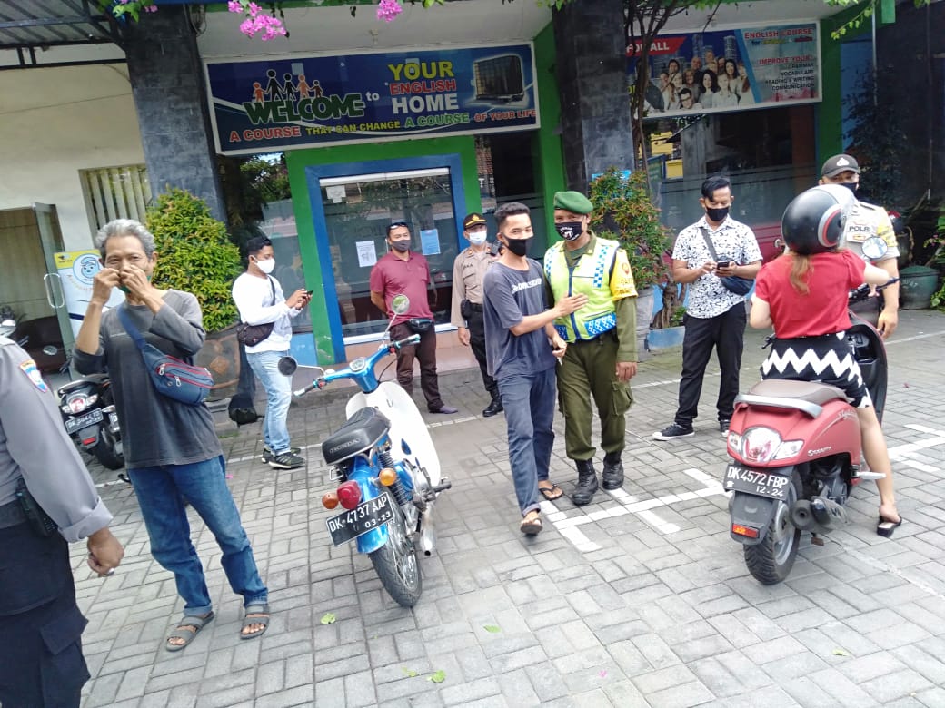 Tim gabungan yang terdiri atas unsur TNI/Polri, Linmas, Satgas Gotong Royong Desa Sumerta Kelod turut menggelar razia penegakan hukum Pergub Bali Nomor 46 Tahun 2020. Kegiatan yang menyasar dua titik yakni Jalan Merdeka dan Area Pasar Sebudi ini dipimpin Wakapolsek Dentim, AKP I Ketut Suantara pada Kamis (24/9) pagi.