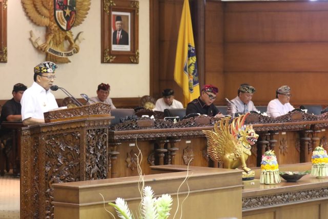 DPRD Bali, Kamis (20/7/2023) menggelar rapat paripurna ke-31 masa persidangan II tahun 2023 untuk mendengarkan jawaban pemerintah terhadap pemandangan umum fraksi-fraksi terhadap tiga raperda yang diajukan Gubernur. Rapat paripurna dipimpin Ketua DPRD Bali Nyoman Adi Wiryatama didampingi Wakil-wakilnya serta mayoritas anggota DPRD Bali dan Sekwan Gede Indra Dewa Putra.