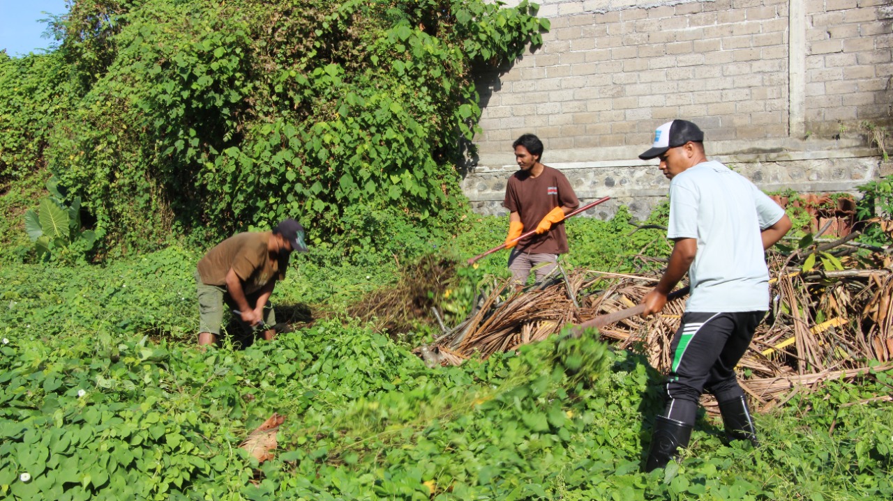 Pembukaan lahan untuk program padat karya tunai di Desa Dauh Puri Kaja.