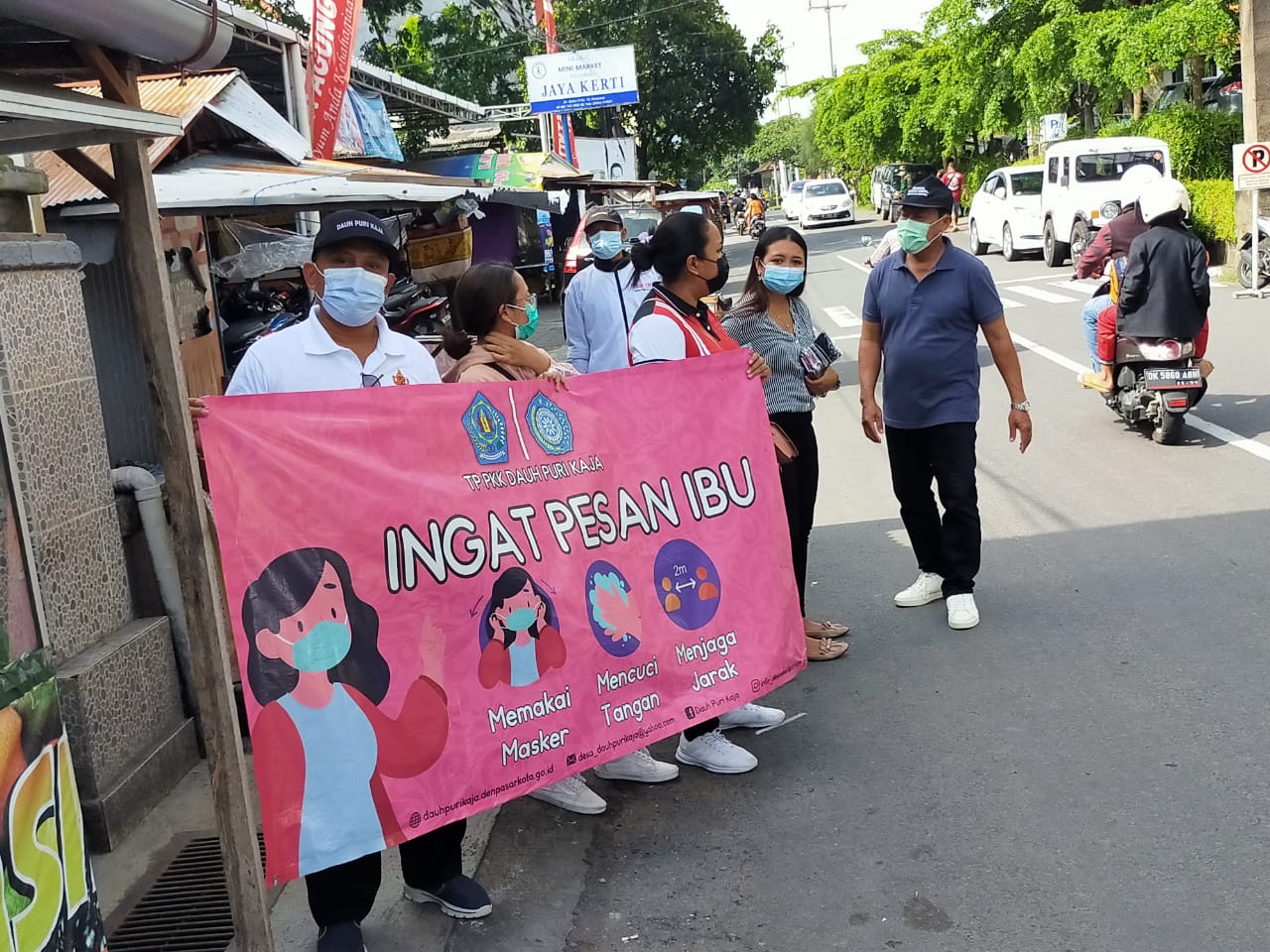 Dalam menekan jumlah penyebaran covid-19, Desa Dauh Puri Kaja kembali melaksanakan edukasi dan mengingatkan kepada masyarakat untuk menerapkan pesan ibu yakni 3M. Kegiatan kali ini dilaksanakan di kawasan Jalan Gatot Subroto VI, Denpasar Utara, Senin (1/2).