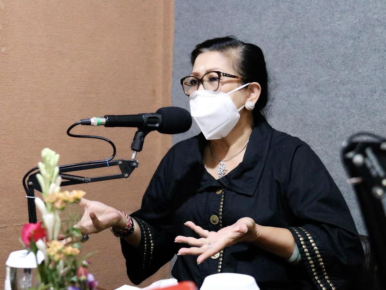 Ketua TP PKK Provinsi Bali Ny. Putri Suastini Koster, Selasa (17/11/2020) menggelar dialog dengan tema “Tanggap Covid-19, Ingat Pesan Ibu 3M”, di Radio Dirgantara Negara. Pada kesempatan itu, Putri Koster didampingi Ketua TP PKK Kabupaten Jembrana Ny. Ari Sugianti Artha.