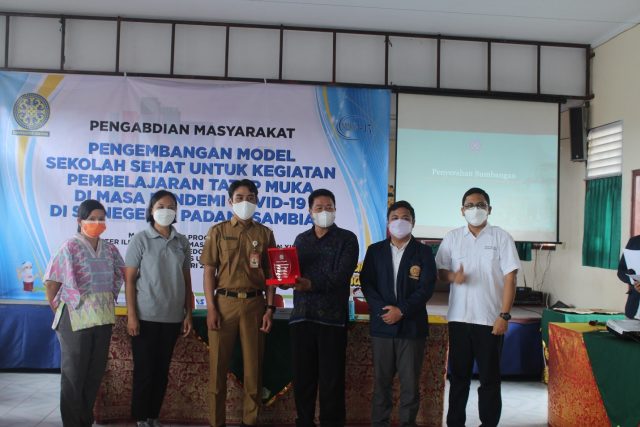 Menurutnya, kegiatan pengabdian merupakan salah satu dari Tri Dharma Perguruan Tinggi yang harus dilaksanakan selain aspek pendidikan dan penelitian. Lebih lanjut disampaikan juga mengenai pentingnya protokol dan pedoman dalam pelaksanaan kegiatan pembelajaran tatap muka di sekolah pada masa pandemi covid-19 sehingga tidak terjadi peningkatan jumlah kasus covid-19 pada anak-anak, seperti yang terjadi di Eropa karena adanya euforia akibat cakupan vaksinasi yang dianggap sudah tinggi serta pentingnya tetap waspada terhadap varian Omicron.
