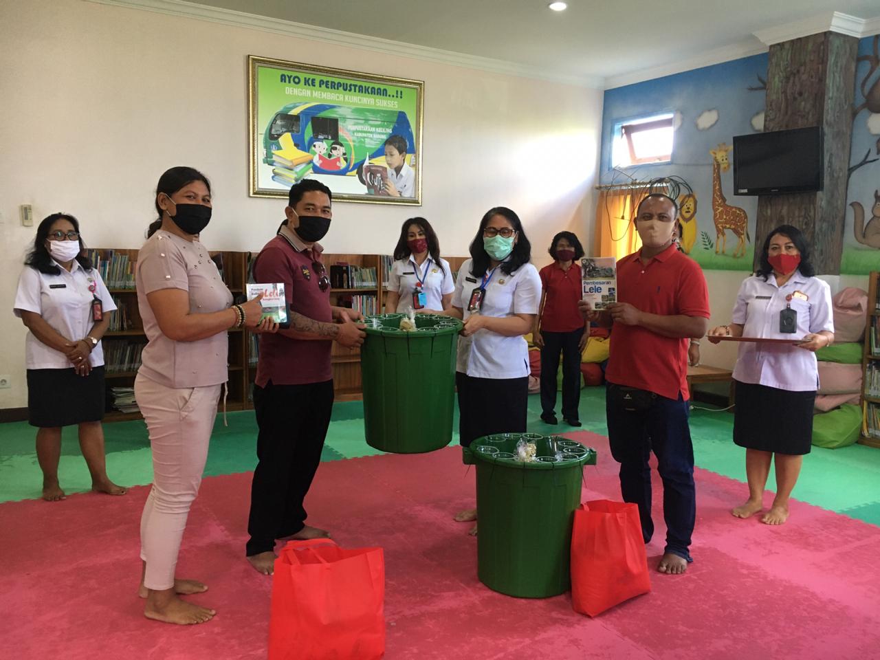 BANTUAN – Kepala Dinas Kearsipan dan Perpustakaan Badung Ni Wayan Kristiani menyerahkan bantuan penerapan perpustakaan berinklusi sosial bertempat di Gedung Sastra Mangutama, Rabu (10/6) kemarin.