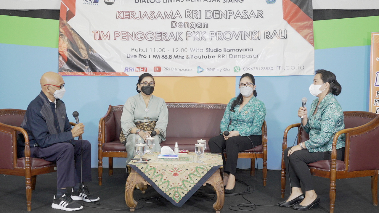DIALOG – Ketua TP PKK Kabupaten Badung Ny. Seniasih Giri Prasta saat acara Dialog Lintas Denpasar Siang di RRI Denpasar, Senin (24/1).