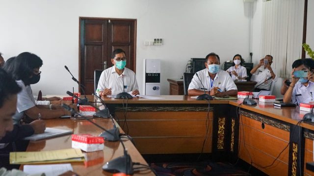 KOORDINASI – Rapat koordinasi persiapan pelaksanaan pasar gotong royong krama Bali yang akan digelar mulai Jumat mendatang.