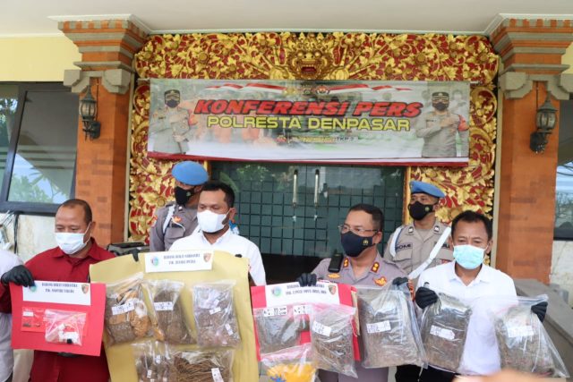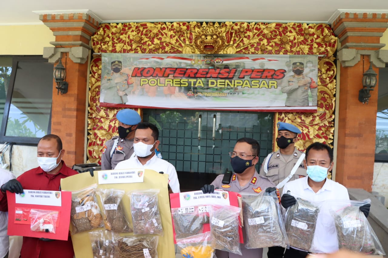 Dominasi barang bukti narkotika berupa ganja hampir 8 kilogram. Sementara itu barang bukti narkoba diamankan, didominasi 7.914 gram ganja, 14,31 gram sabu, dan 6,45 gram tembakau gorilla. Barang bukti ganja terbanyak disita dari tersangka Denni (31) di Jalan Kubu Bias Kecamatan Denpasar Barat dengan jumlah 4.669 gram. Kemudian dari tersangka Juanda (26) di Jalan Ekalawya, Seminyak diperoleh barang bukti ganja sebanyak 2.044 gram.
