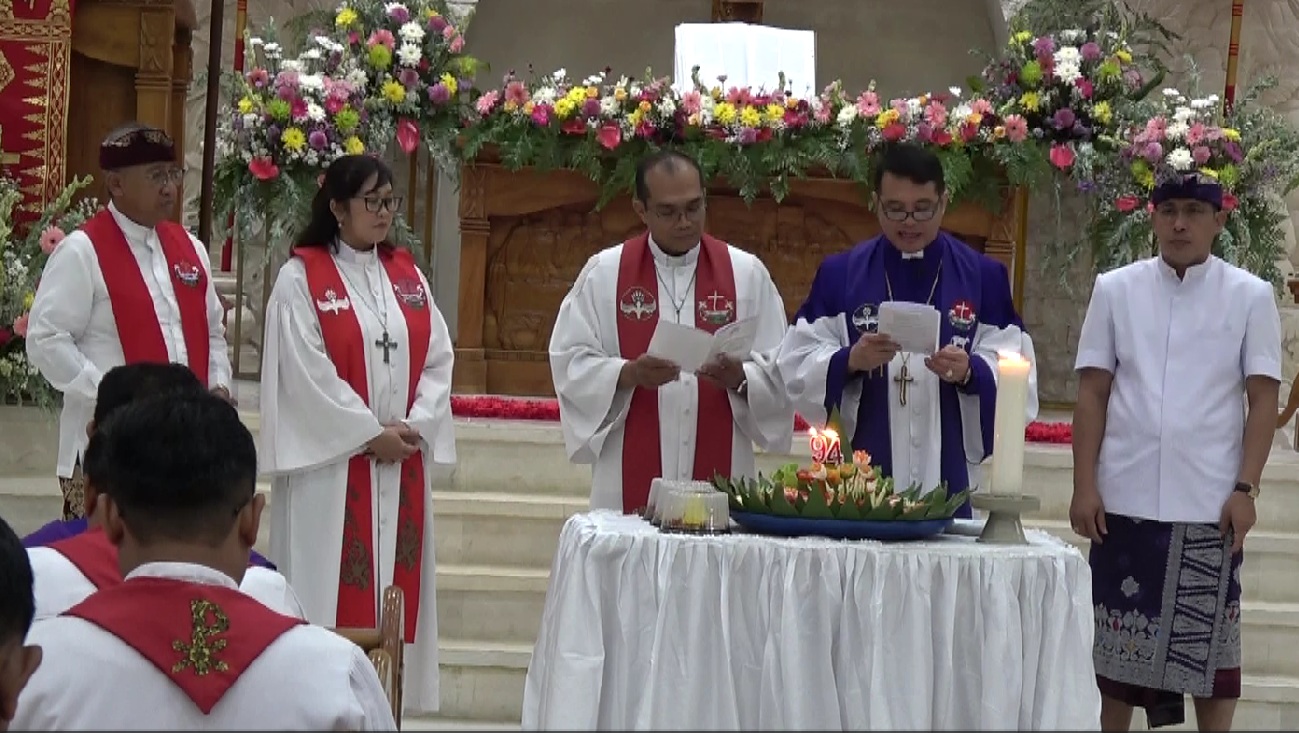 Acara juga diisi dengan pembaptisan calon pendeta dan hari ini kita upacarakan sekaligus perayaan ulang tahun yang ke-94. “Pada perayaan HUT ini, kita upacarakan sekaligus,” ujar Ketua Badan kehormatan (BK) DPRD Kabupaten Badung tersebut.