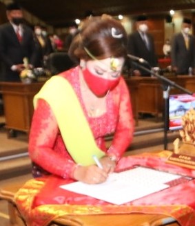 Luh Kadek Suastiari, Rabu (21/4) resmi diambil sumpah dan janjinya sebagai pengganti antarwaktu (PAW) DPRD Badung menggantikan alm. IB Made Sunartha. Pengambilan sumpah ini dilakukan pada rapat paripurna yang dipimpin Ketua DPRD Badung Putu Parwata.