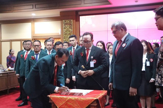 PELANTIKAN IDI DAN IBI – Pelantikan pengurus lDl dan lBl Cabang Badung di Ruang Madya Utama Kantor DPRD, Puspem Badung, Jumat (7/3).