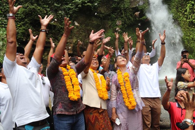 Kehadiran Sekda disambut anggota DPRD Badung I Gusti Lanang Umbara dan IGA Agung Inda Trimafo Yudha, Kadis Pariwisata I Nyoman Rudiarta, Kadisdukcapil AA Ngurah Arimbawa, Perbekel Sulangai I Nyoman Sunarta, Ketua BUM Desa Sulangai Putu Sumerta, Ketua Pokdarwis Sulangai I Nyoman Sumadana serta tokoh masyarakat setempat. Dari lapangan, Sekda Adi Arnawa berjalan kaki menuju lokasi air terjun yang jaraknya sekitar 800 meter. Di lokasi air terjun, Sekda bersama anggota DPRD dan tokoh masyarakat melakukan pelepasan burung guna menjaga kelestarian alam.