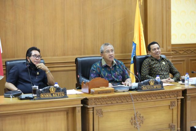 Ketua DPRD Badung, Putu Parwata didampingi Wakil Ketua I, Wayan Suyasa dan Wakil Ketua II, Made Sunarta usai menerima dokumen RAPBD tahun 2021 di ruang Rapim, Selasa (20/10/2020) mengatakan, ada sejumlah target kinerja yang dilakukan oleh Pjs. Bupati Badung yang perlu diapresiasi oleh Dewan. Pertama adalah mengenai pembahasan Rancangan Anggaran Pendapatan dan Belanja Daerah Tahun 2021 yang bisa diselesaikan tepat waktu bahkan diprediksi maju dari yang ditargetkan lebih awal. ”Ini merupakan sinergi yang baik serta menjalin komunikasi yang baik dengan para OPD-nya dan legislatif sehingga bisa RAPBD 2021 ini rampung lebih awal,” ujarnya.