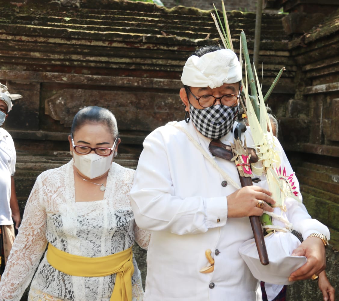 Disambangi Bupati Lumajang Thoriqul Haq di sela prosesi Mapepada, Wagub Cok. Ace menjelaskan, segenap tatanan upacara telah dilaksanakan dengan penerapan prokes yang ketat, mengingat karya dilakukan di tengah masa pandemi. “Sebelum dilangsungkan upacara, areal pura sudah disemprot disinfektan. Seluruh perangkat dan pemuput upacara juga telah divaksin dan tidak meninggalkan prokes,” tukas Penglingsir Puri Ubud ini.