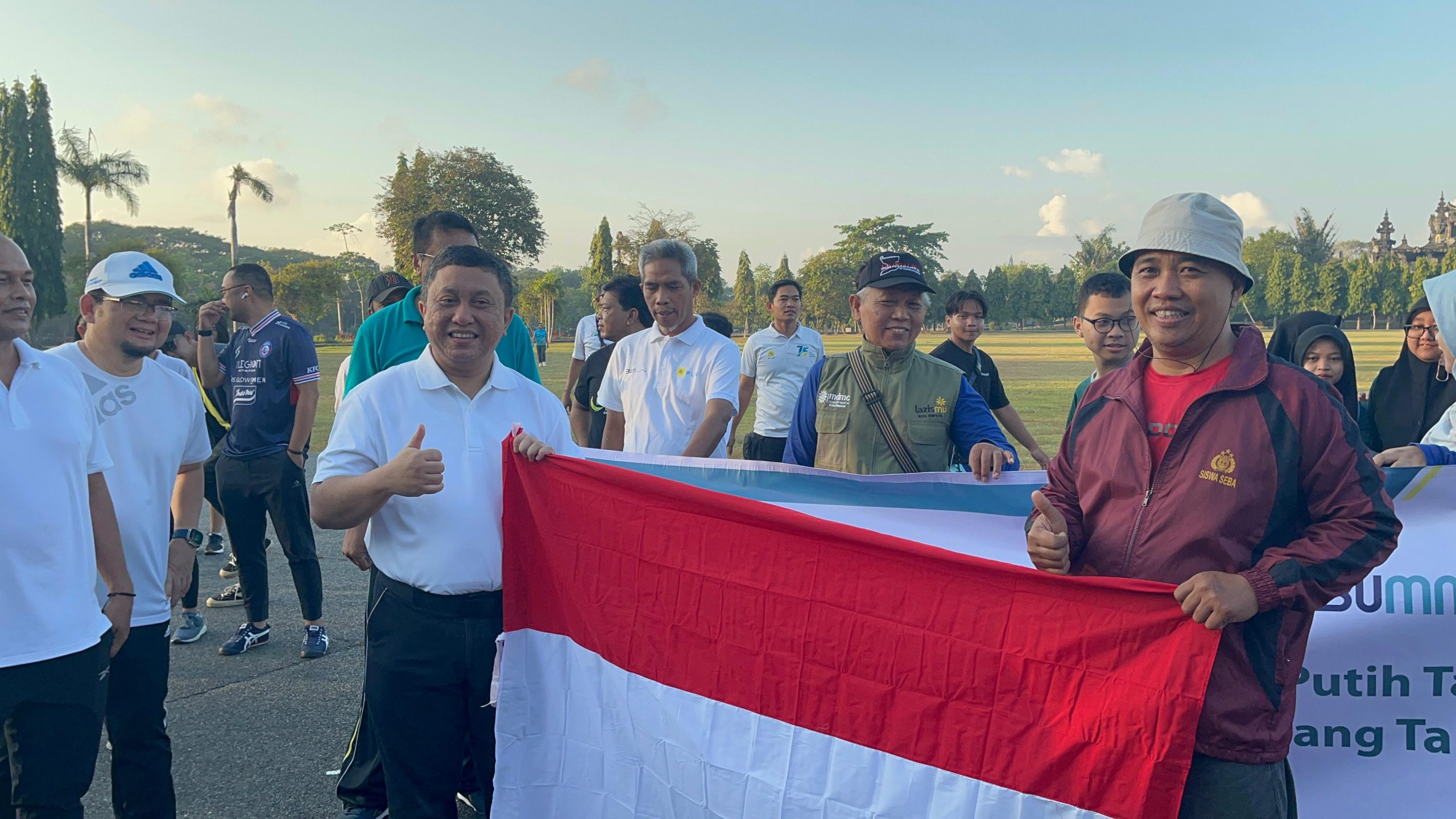 PT PLN (Persero) Unit Induk Distribusi (UID) Bali membagikan ratusan bendera merah putih di Lapangan Puputan Margarana, Renon Denpasar, pada Jumat (26/7). Bendera merah putih ini dibagikan di sela-sela olah raga rutin Jumat pagi yang merupakan bagian dari program wellbeing Karyawan PLN. Gerakan bagi bagi bendera ini sebagai wujud rasa cinta tanah air PLN sebagai bagian dari BUMN.