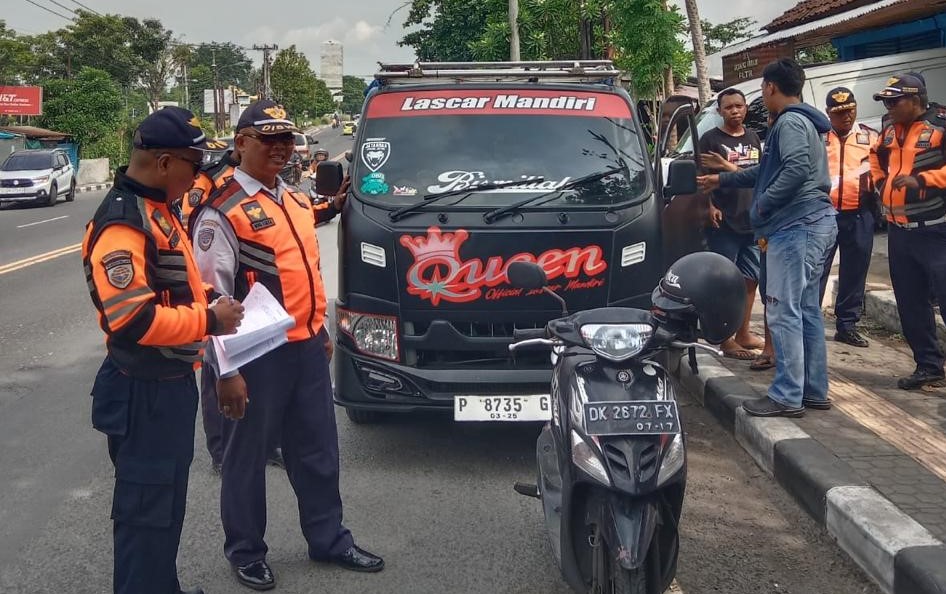 SIDAK LALIN – Tim Gabungan Dinas Perhubungan Kota Denpasar saat melaksanakan sidak lalin dan angkutan jalan di Jalan Cargo hingga Jalan Gajah Mada Denpasar, Senin (29/1).