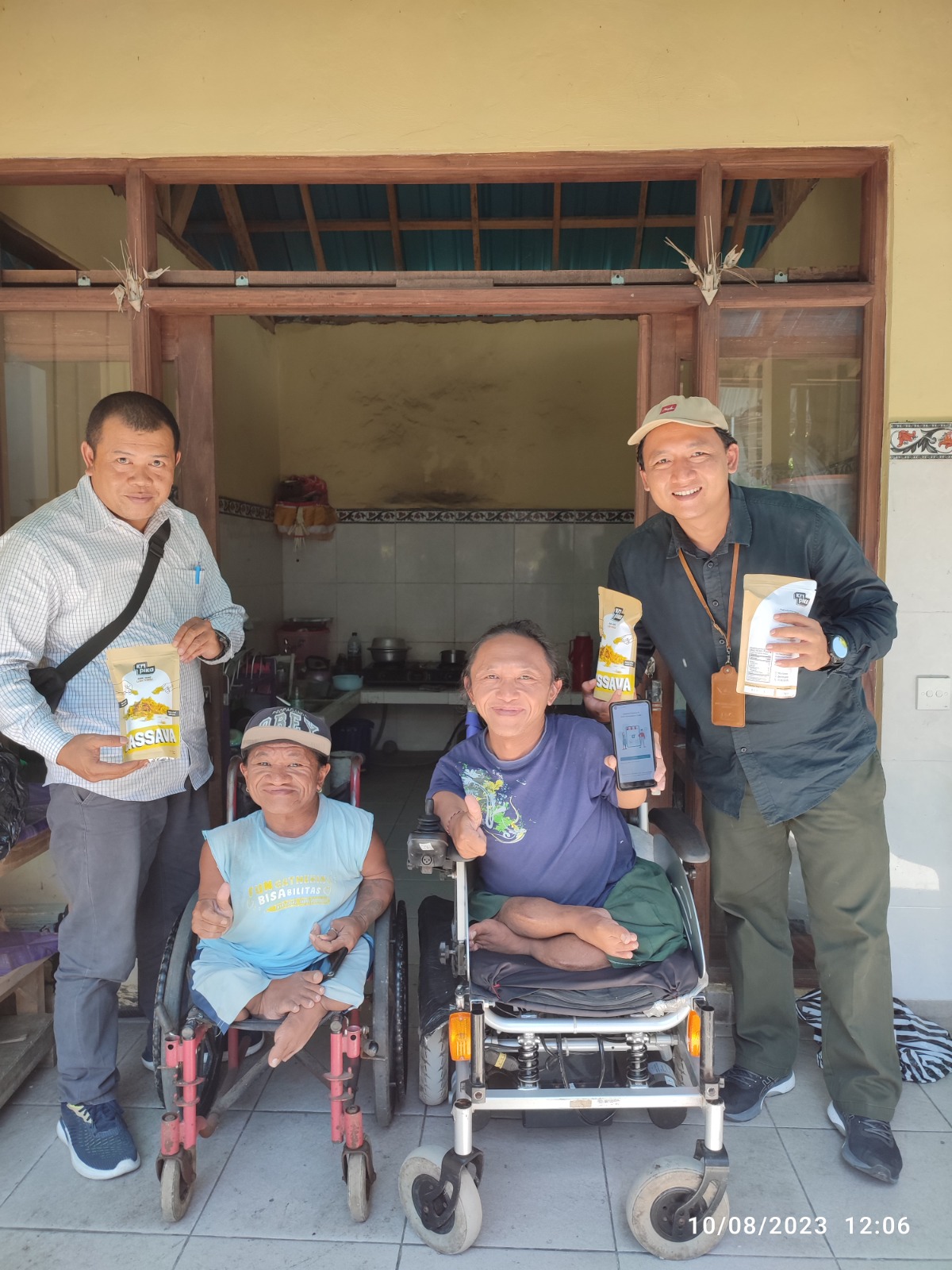 UMKM DISABILITAS – Tim pemasaran ULP Gianyar berpose bersama pelaku UMKM disabilitas Tree Brother+Family.