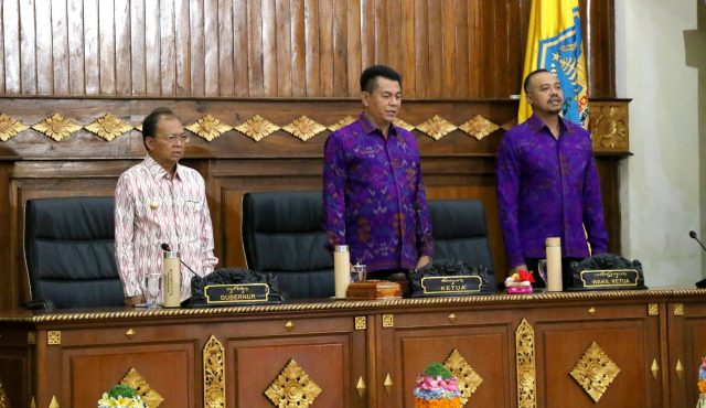 DPRD Provinsi Bali, Senin (29/9/2025) menggelar rapat paripurna ke-5 masa persidangan I tahun sidang 2025-2026 di Gedung Wiswa Sabha Utama Kantor Gubernur Bali di bilangan Renon Denpasar. Rapat paripurna tersebut digelar untuk mendengarkan penjelasan Gubernur terhadap dua raperda yakni Raperda tentang APBD Semesta Berencana Provinsi Bali Tahun Anggaran 2026 dan Raperda tentang Penyertaan Modal Daerah pada Perseroan Daerah Pusat Kebudayaan Bali (PKB).