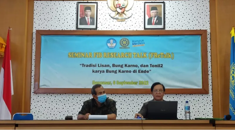 FIB Research Talk (FReTalk) XIII mengusung tema “Tradisi Lisan, Bung Karno, dan Tonil-tonil Karya Bung Karno di Ende”. Dalam acara ini, hadir sebagai pembicara, yaitu Dr. Dra. Maria Matildis Banda, M.S., dosen Program Studi Sastra Indonesia, FIB Unud. Acara dipandu oleh Dr. Drs. I Wayan Tagel Eddy. M.S, dosen Program Studi Sejarah FIB, Unud.