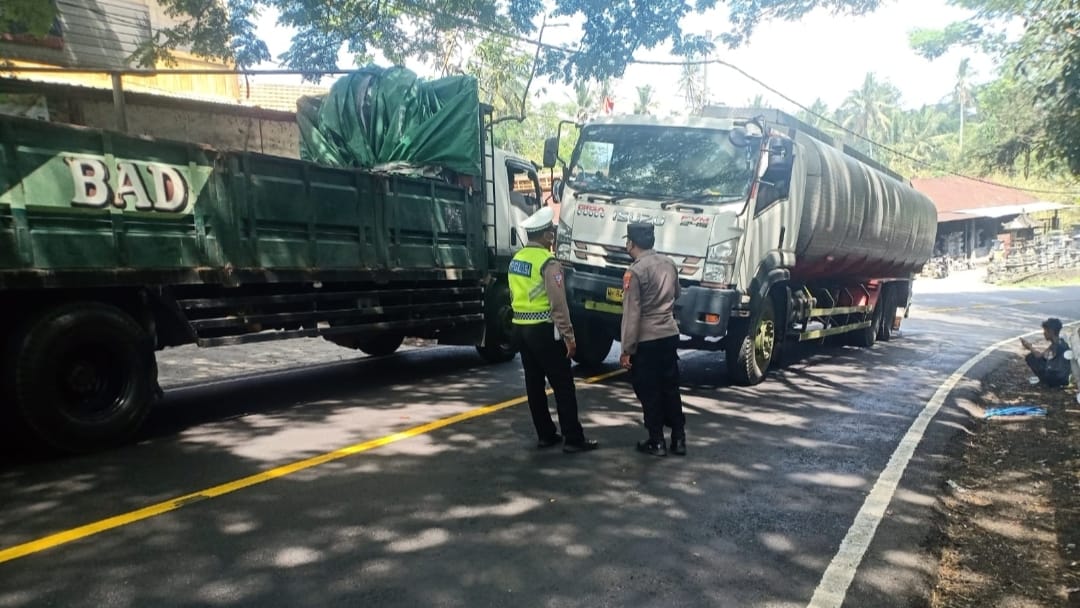 Dua Truk Mogok, Polsek Kerambitan Lakukan Pengaturan Lalin
