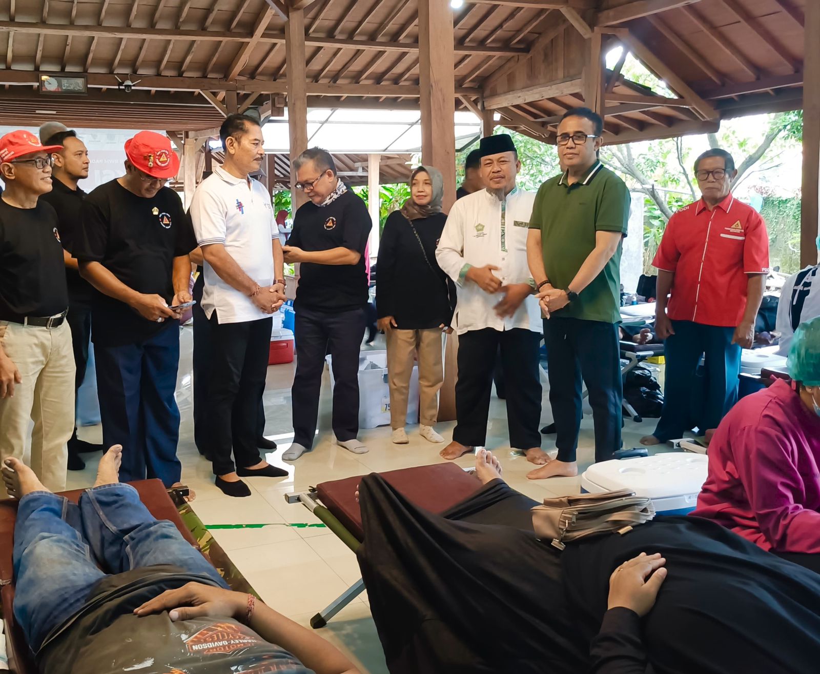 Walikota Denpasar I Gusti Ngurah Jaya Negara hadir guna meninjau pelaksanaan aksi sosial donor darah yang digelar Perhimpunan Donor Darah Indonesia (PDDI) RWM Padangsambian Raya, di Pondok Khalifah, Kelurahan Padangsambian, Minggu (6/7).