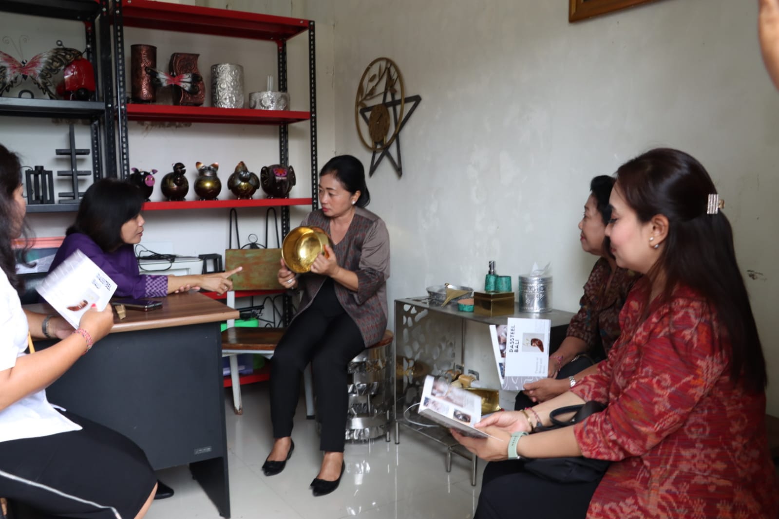 Dua tempat kerja para perajin Denpasar dikunjungi yakni Passteel Bali dan Wadon Bali. Ny. Antari Jaya Negara beserta pengurus Dekranasda tampak bertatap muka dan berdiskusi dengan masing-masing perajin. “Tantangan terus dihadapi para perajin saat ini terlebih dengan adanya situasi pascapandemi covid-19 yang membuat para perajin harus terus berinovasi,” ujar Ny. Antari.